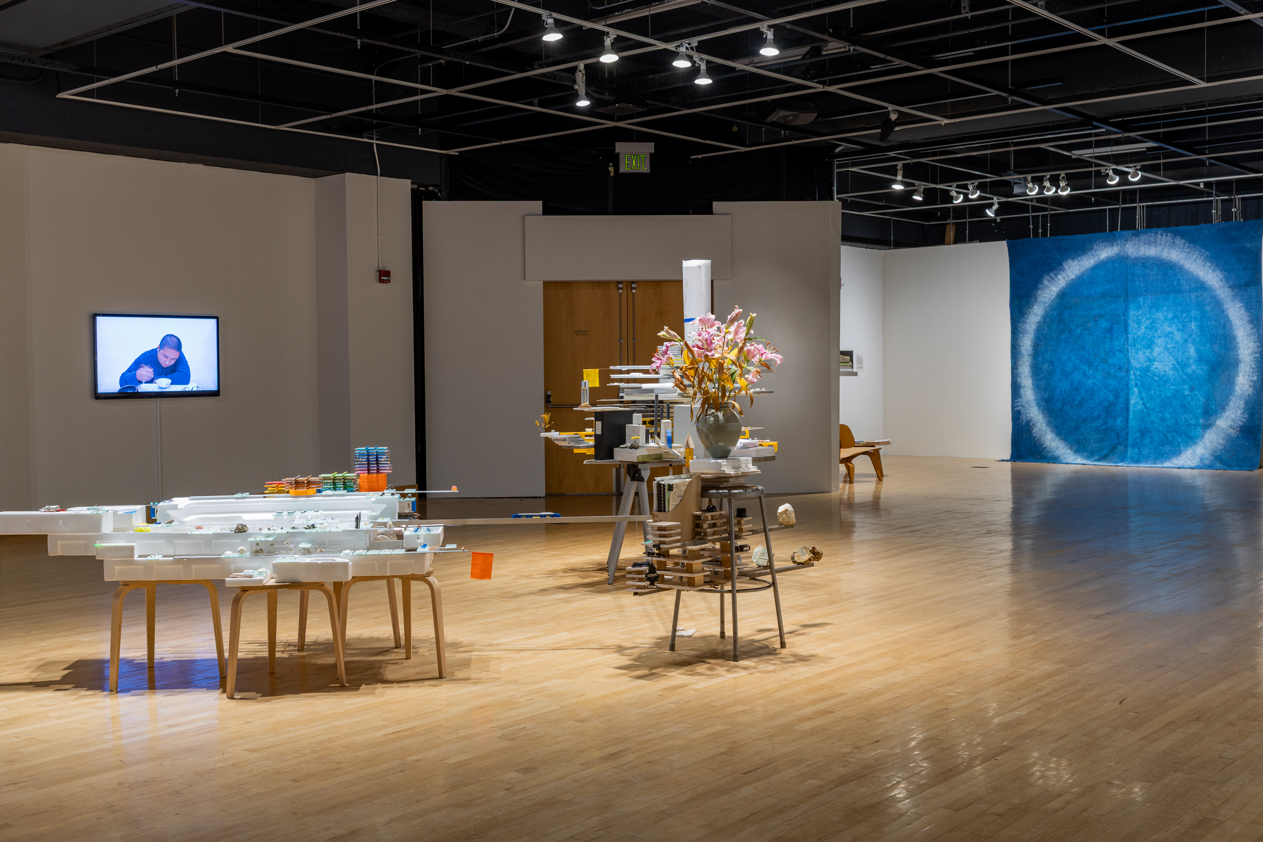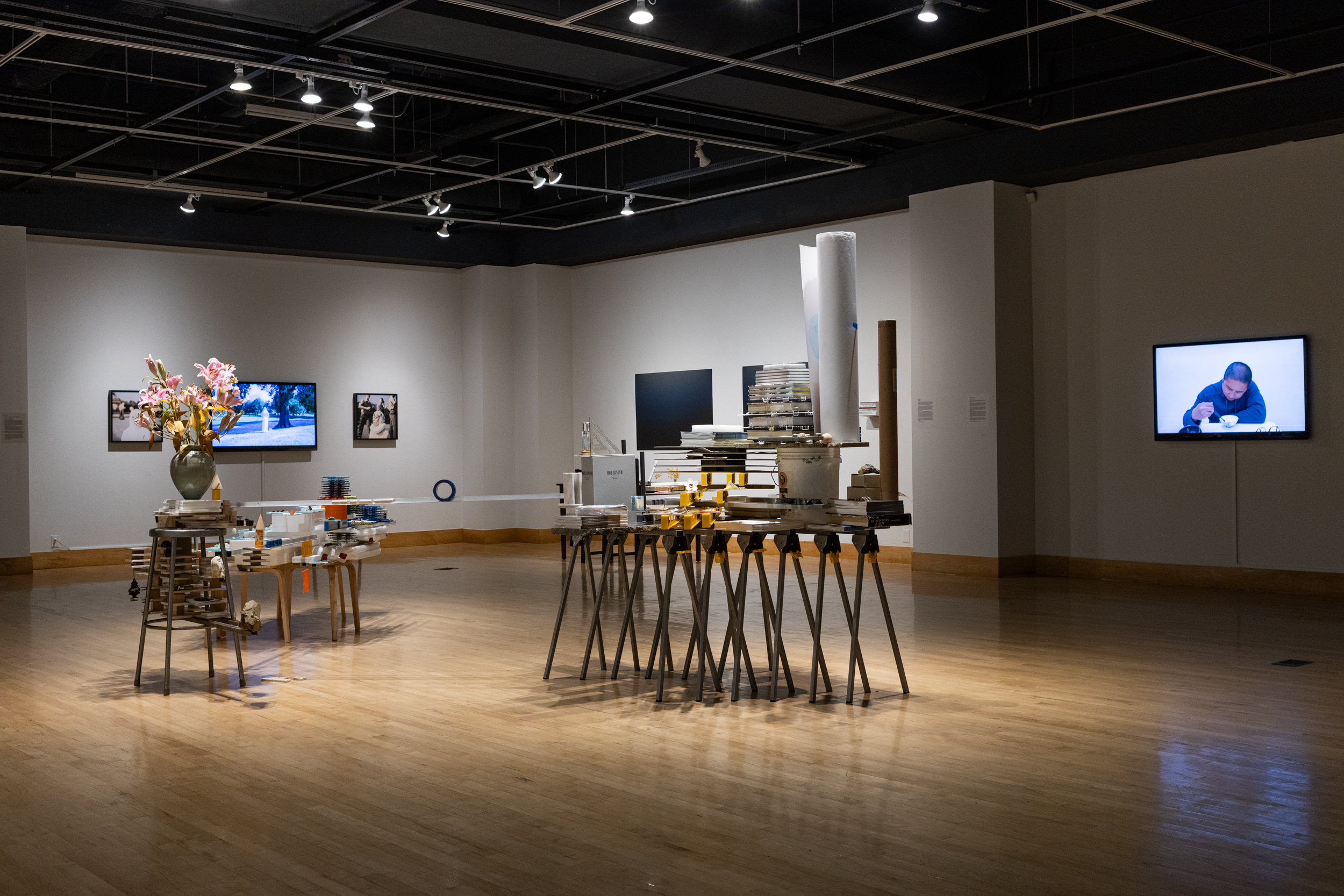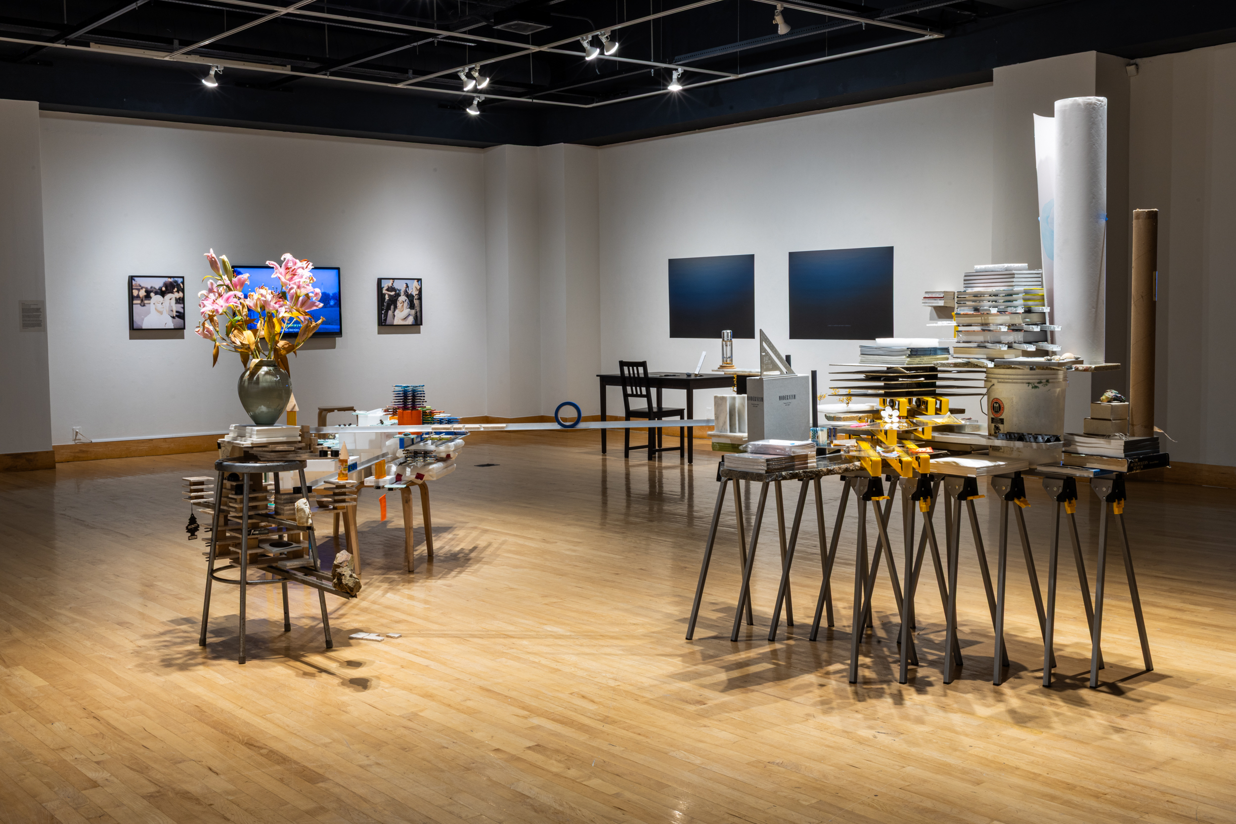 Exhibition install shot: Joshua Moreno, Tiazong Jiang, and Mara Duvra