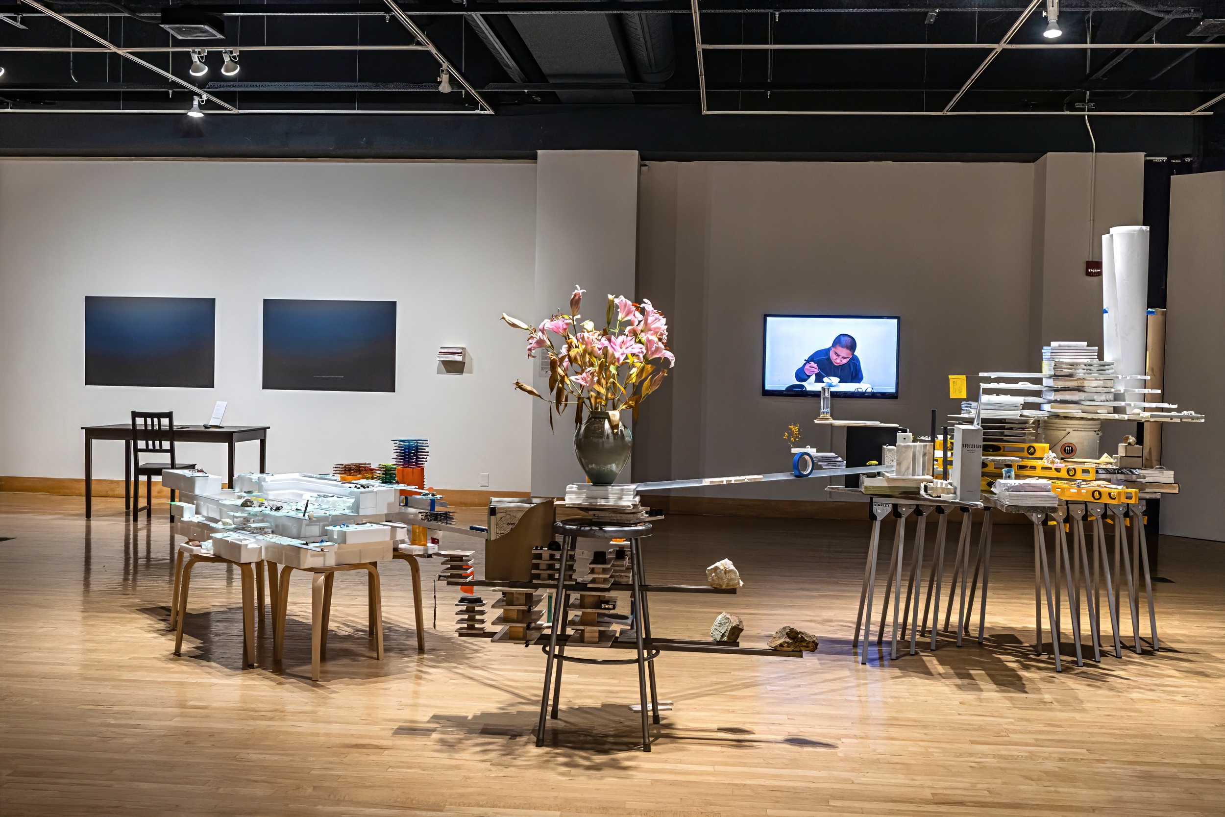 Exhibition install shot: Joshua Moreno and Maria Gaspar